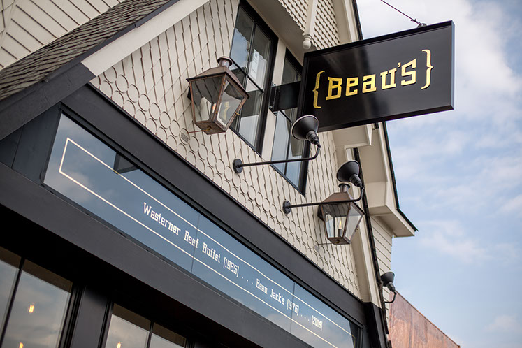 Beau's is a fresh iteration of a neighborhood staple. A full-service bar, modern cocktails, and an extensive wine list accompanied by elevated American classics from our wood-fire grill lend themselves to an experience of luxury and class. From the brass-topped bar and marble tables to the deep leather booths and reclaimed theatre chandeliers, Beau's is an atmosphere like no other. Sip whiskey from our collection and enjoy the warm inviting atmosphere in this community renovation.